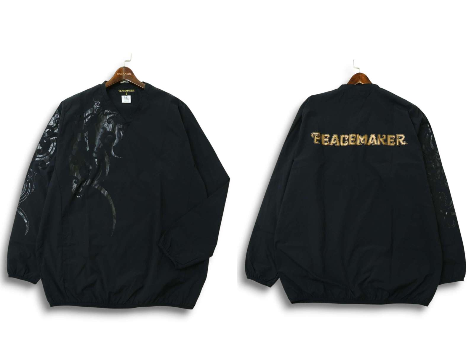 | PEACE MAKER ピースメーカー ロゴ トライバル プリント★ Vネック 長袖 カットソー ロンTシャツ Sz.XL メンズ 黒 大きい C5T03128_4#F | |||