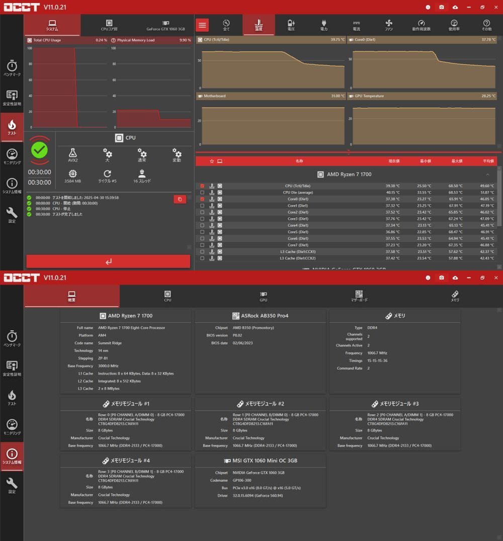 PC耐久テストOCCT完走しました。