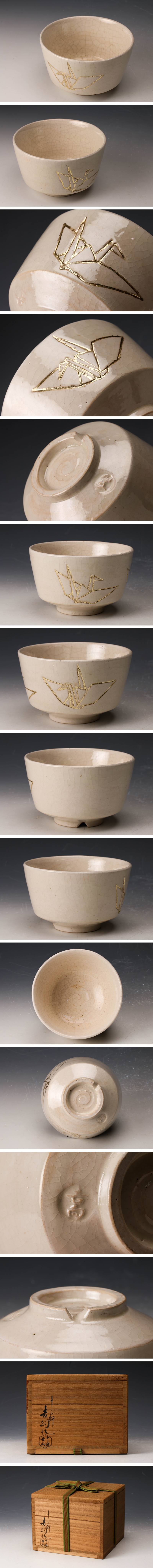 【佳香】八代 吉向十三軒 白鶴茶碗 共箱 茶道具 本物保証