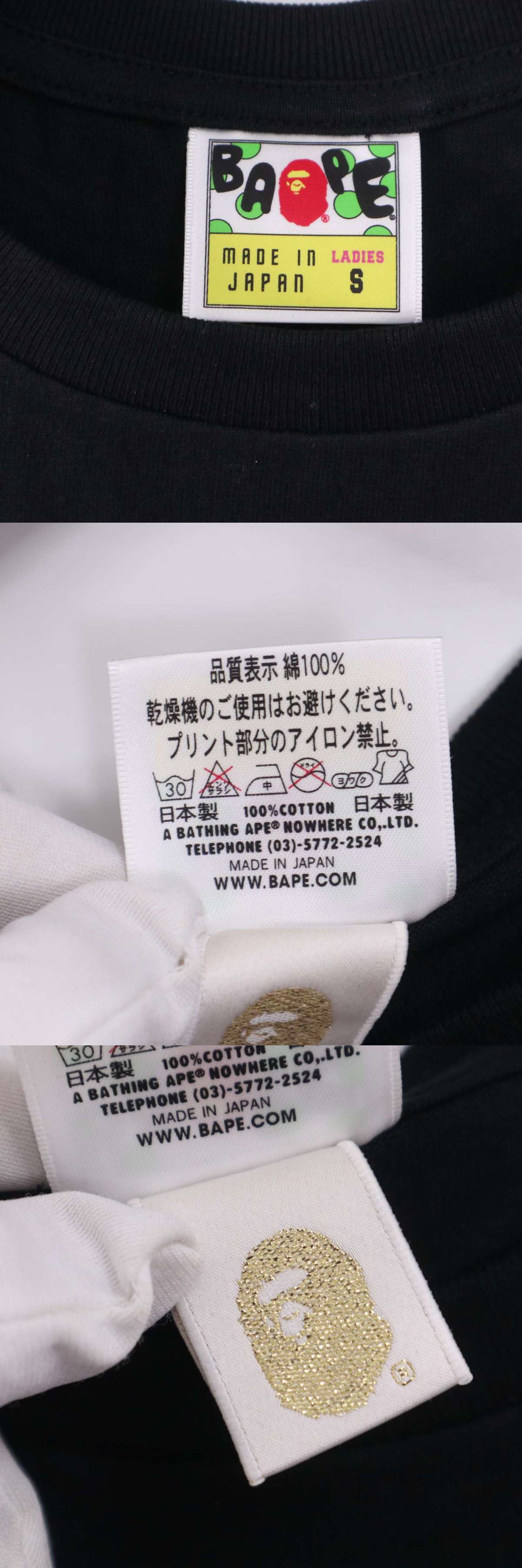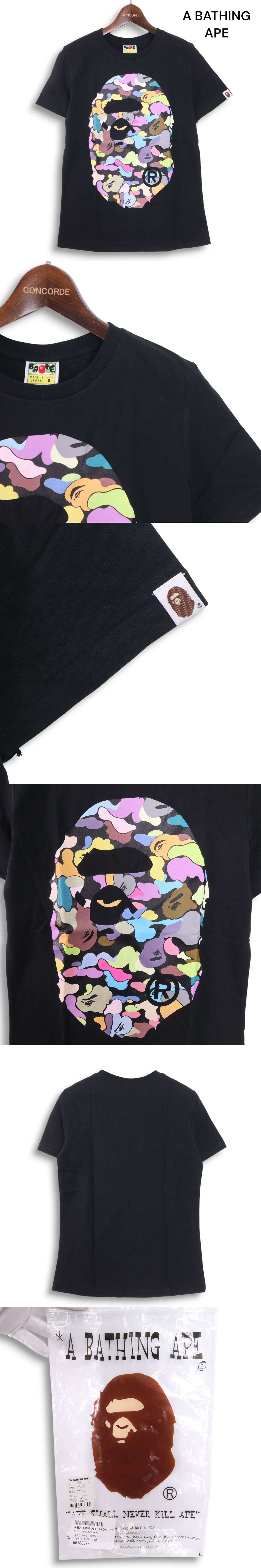 | 美品★A BATHING APE ア ベイシング エイプ 春夏 カモフラ サル 猿ロゴ 半袖 カットソー Tシャツ Sz.S レディース 黒 日本製 K5T00789_4#D | |||