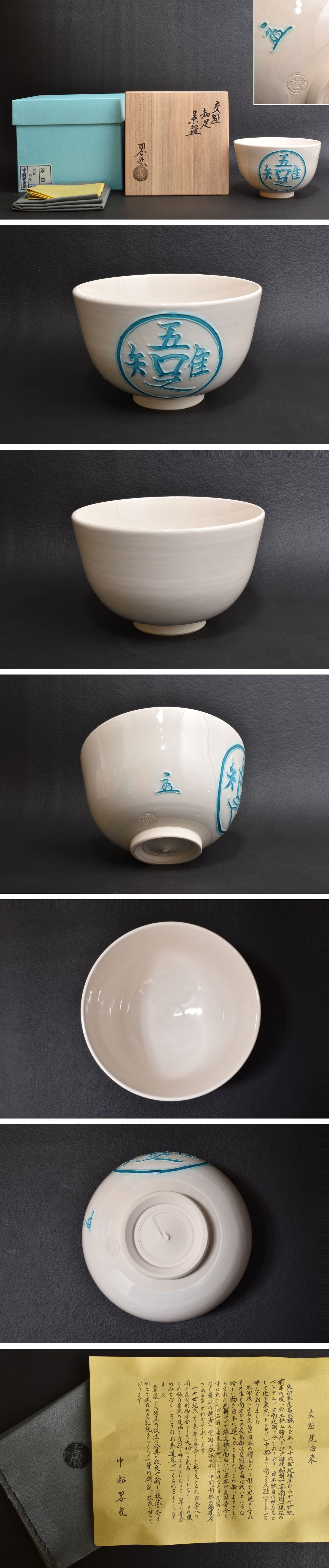 5585 中村翠嵐 交趾知足 茶碗 無キズ 共箱 美品