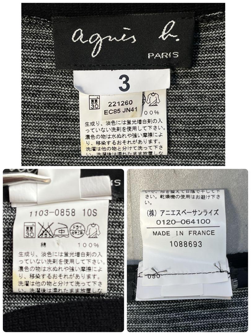 フランス製☆ agnes b. アニエスべー コットンニットカーディガン ボーダー&ダイヤ柄 サイズ3