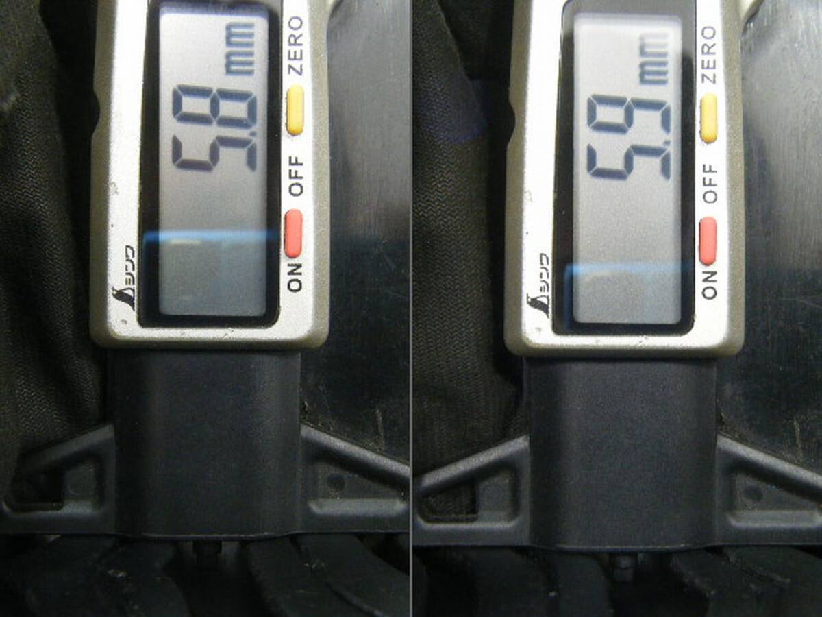 ※殘り溝に関しましては、主観の差が出ないよう、國産のタイヤゲージを用いて計(jì)測を行い、計(jì)測畫像を掲載し、『目安』としての殘り溝(~分山)を記載させて頂いております。