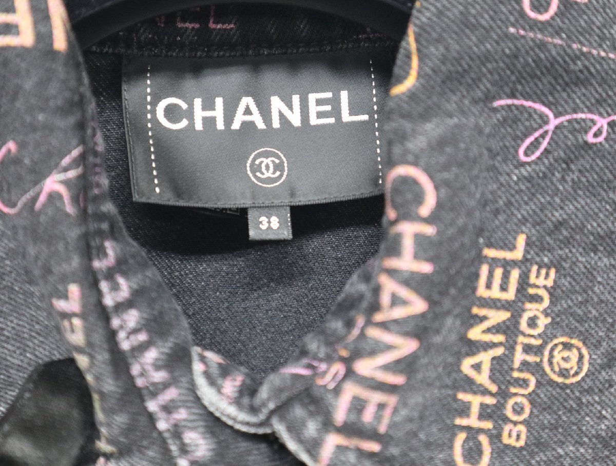 | シャネル CHANEL 22P P72307 V63976 ココ シャネル ココマーク プリント デニム ジャケット サイズ38 ブラック マルチ 美品 トップス |