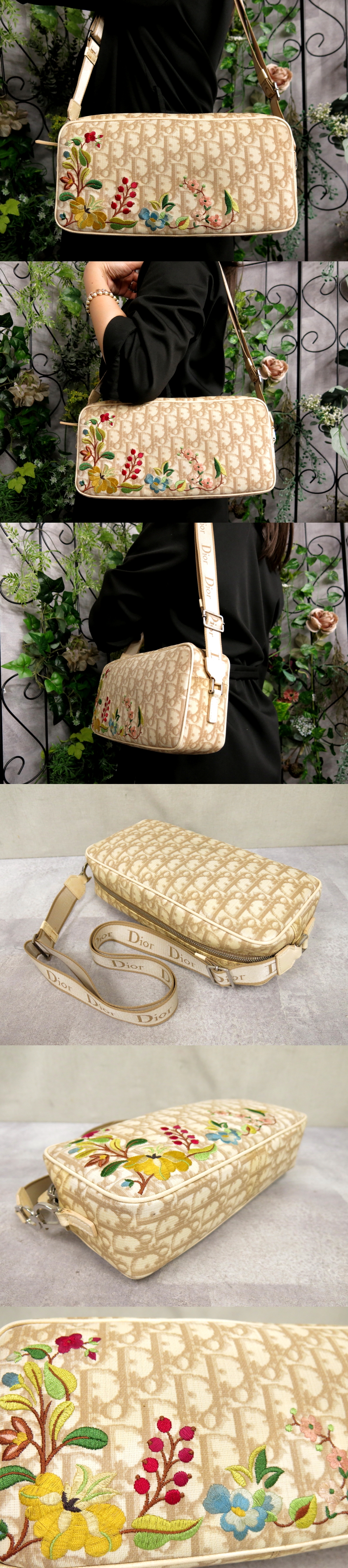トロッター フラワー刺繍 PVC カーフ レザー ショルダー バッグ
