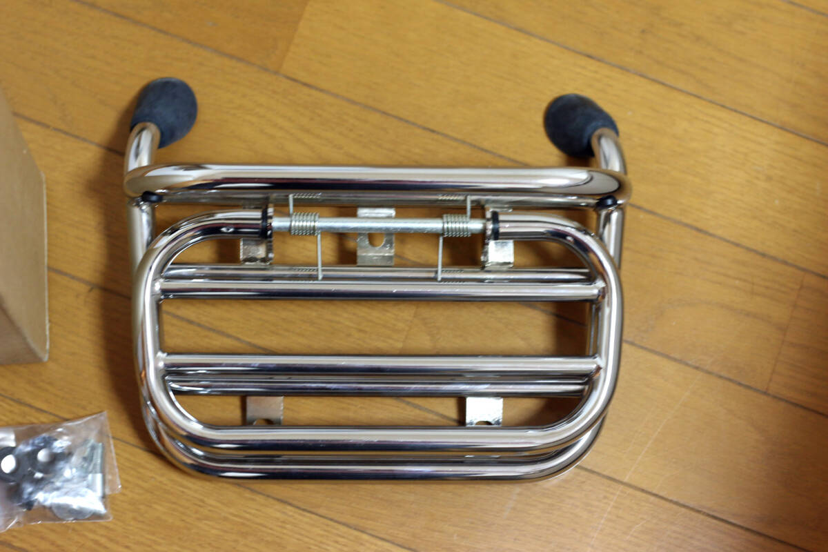「S55」のフロントラゲッジ部をイメージした、クロームメッキ仕上げのスチール製キャリア。 クラシカルなイメージを強(qiáng)めるドレスアップ効果はもちろんのこと、 書(shū)類をはさんだり、小ぶりなバッグを取り付けたりと、実用的にも役立つ裝備です。