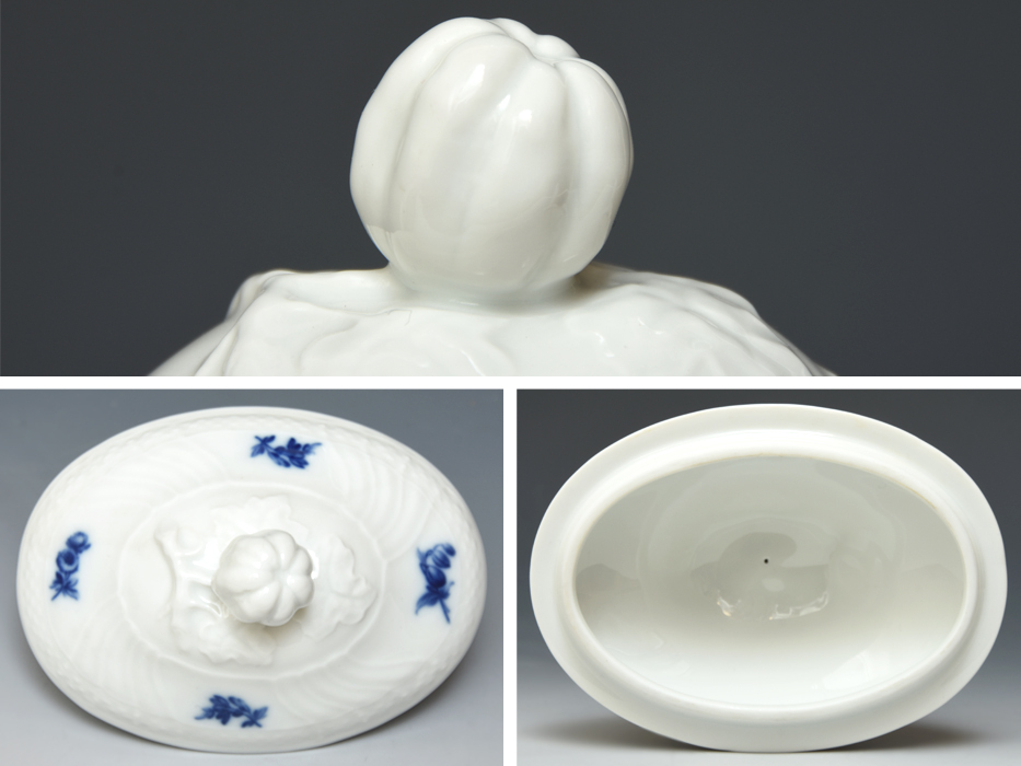 ジノリの伝統(tǒng)的な「ベッキオ」のシェイプにブルーでフラワーブーケが描かれたティーポットとピッチャーのセットです。 染め付けを思わせる色使いと、余白を生かした構(gòu)図はオリエンタルの影響を色濃く受けたものと思われます。 優(yōu)雅なバロック調(diào)のレリーフの美しさと獨(dú)特のぼかしで表現(xiàn)された繊細(xì)なお花が見事に調(diào)和した格調(diào)高い雰囲気のお品です。 わずかなスレが見られますが、総じてコンディションは良好です?! ?BR> ※撮影の際に生じた寫り込みなどがございます。 ご理解の程よろしくお願い致します。 |