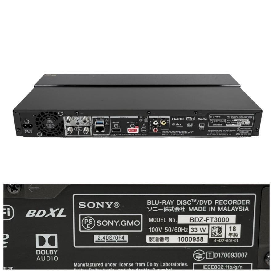 ソニー ブルーレイレコーダー/DVDレコーダー BDZ-FT3000 3TB 3チューナー UltraHDブルーレイ対応 3番組同時録畫 外付けHDD対応 無線LAN內(nèi)蔵モデル BDZ-FT3000 M (2018年モデル)