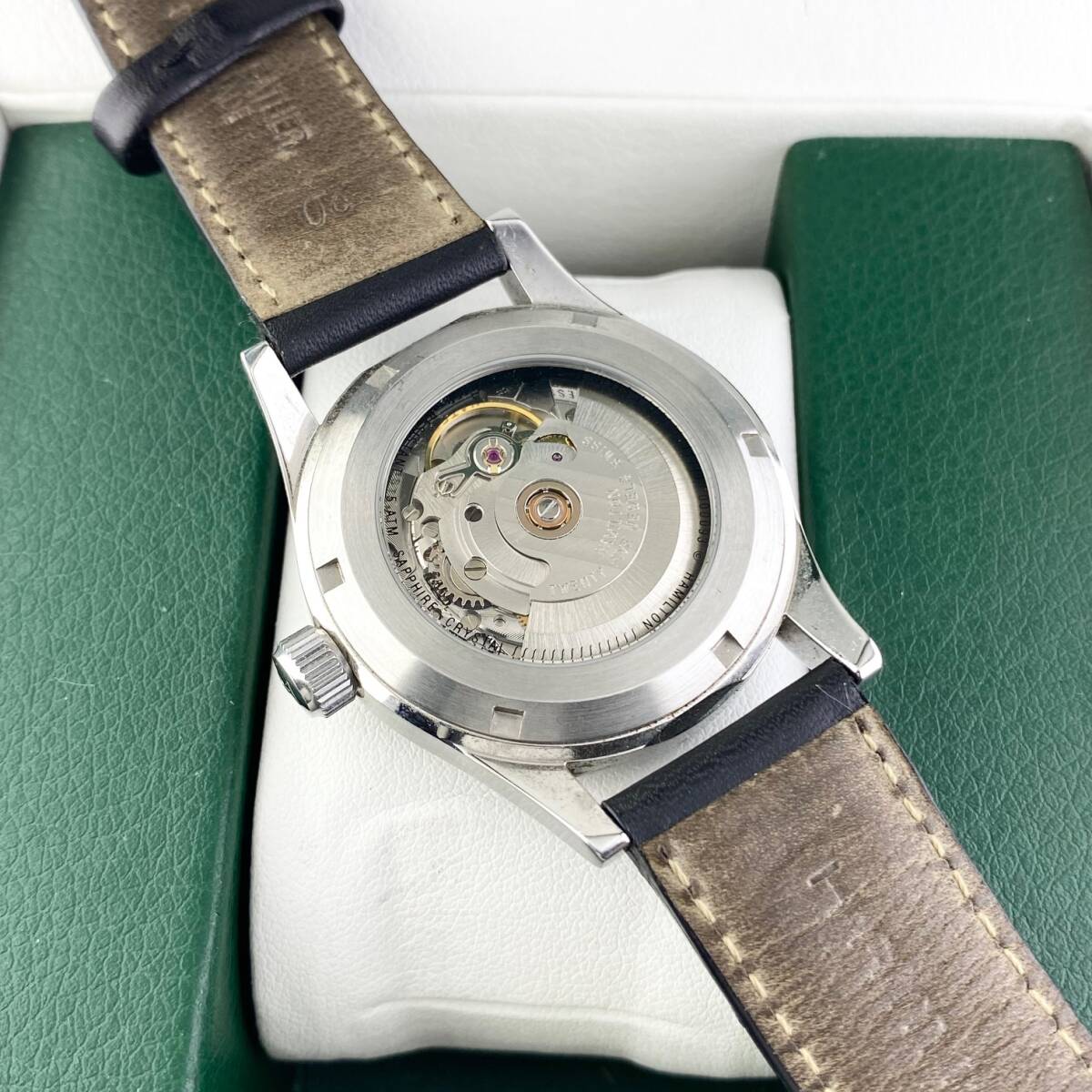 【1円?】HAMILTON ハミルトン 腕時計 メンズ AT 自動巻 KHAKI カーキ 000093 ホワイト文字盤 ラウンドフェイス 裏スケ デイト 可動品 | |||