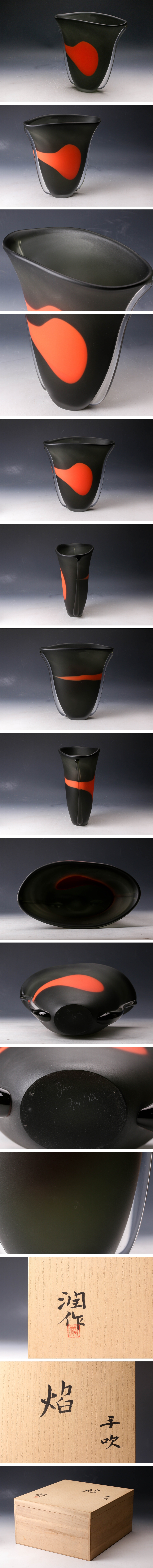 【佳香】藤田潤(rùn) 『焔』手吹花器 共箱 本物保証