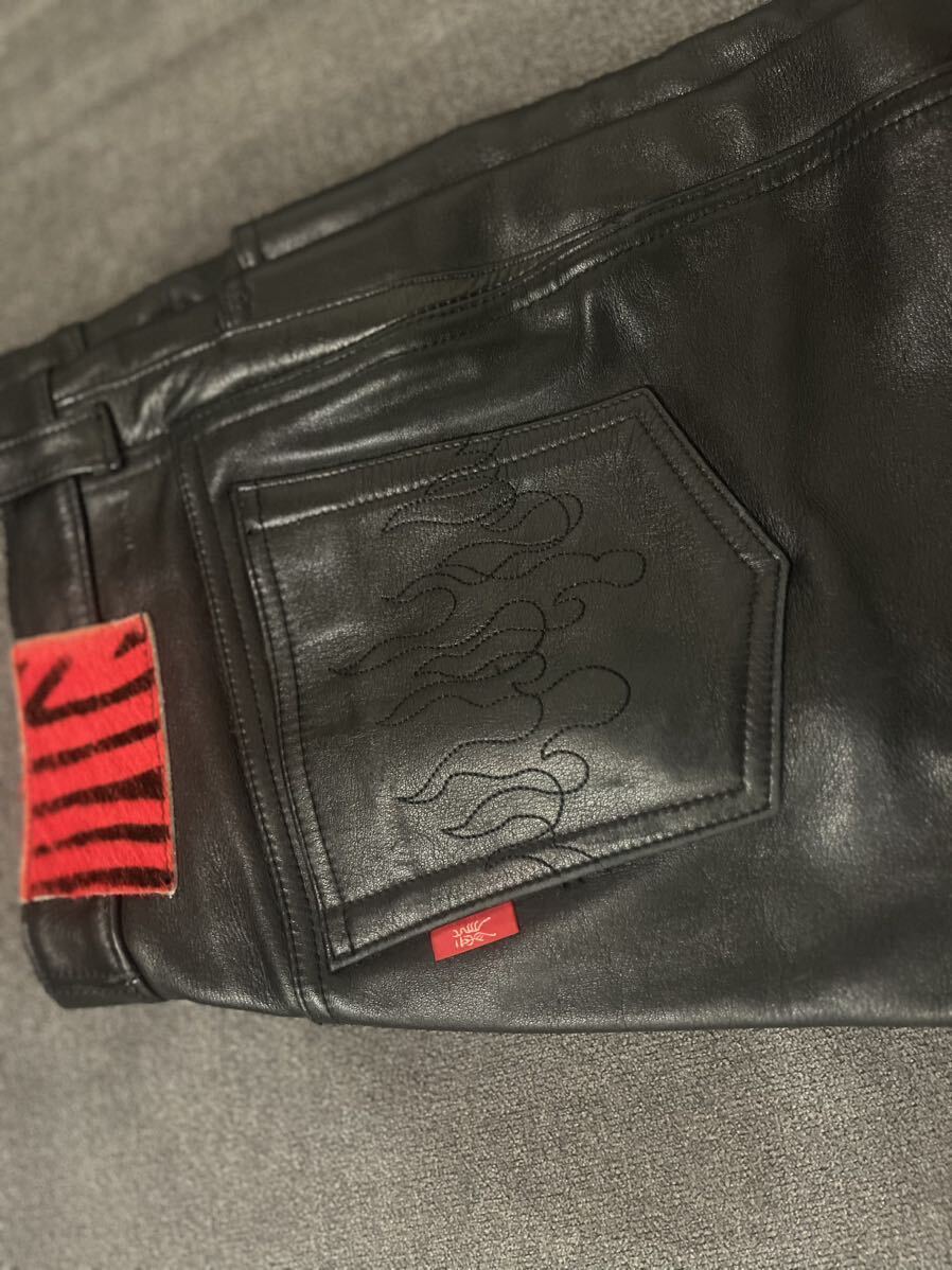 クリームソーダ、ピンクドラゴンのレザーパンツです。牛革