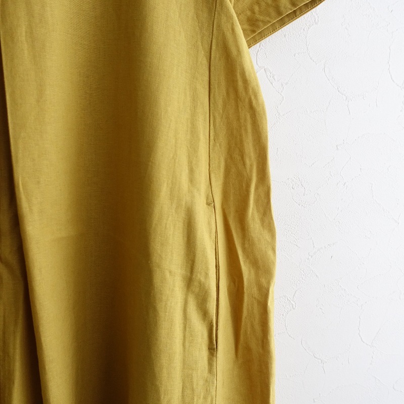 | URBAN RESEARCH DOORSのリネンコットンボックスタックロングワンピースです。カラーはマスタードで、リネンコットン地で仕立てられています。背上部にボタン付きのプルオーバータイプで、ボックスタックがあしらわれ、両サイドにシームポケット付きです。 |