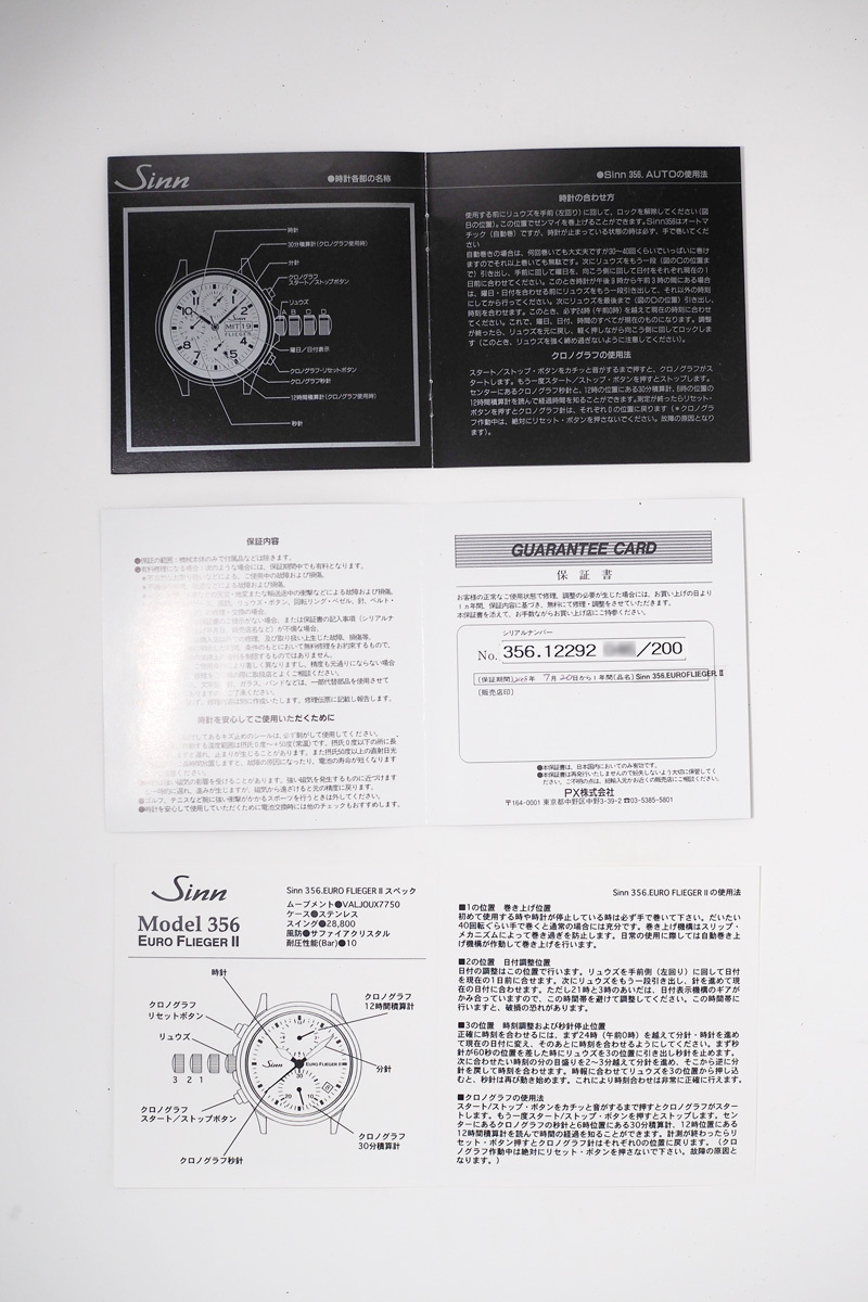 商品は、Sinn 356 EURO FLIEGER Ⅱ の腕時(shí)計(jì)本體と、化粧箱、外箱、PX社書類、PX社保証書、バネ棒外しで寫真に掲載したものが全てです。