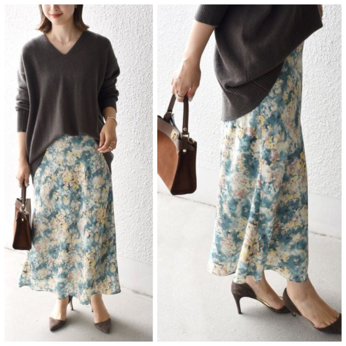 花をモチーフにしたカスリ調(diào)のプリントスカートです。