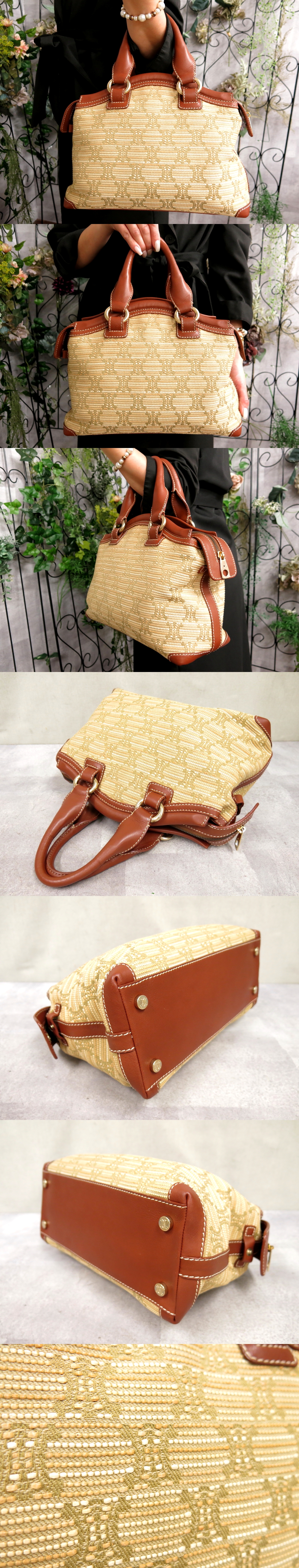 マカダム キャンバス カーフ レザー ハンド バッグ