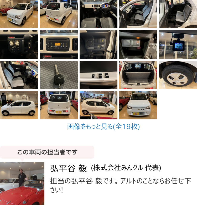 ▼販売店コメント | ドライブレコーダー シートヒーター キーレス CD アイドリングストップ エネチャージ 保証書/記録簿/取説 ご覧頂きありがとうございます。 ■この車への「お問合せ」?「無料見積り依頼」、「在庫確認(rèn)」は、お?dú)葺Xにどうぞ! ■この車両以外にも「車選びドットコム」におすすめの中古車を掲載しております。 他の在庫車種、お店へのアクセスは【販売店情報(bào)ページ】をご覧ください。 問合わせ?來店の際には「中古車情報(bào)サイト(車選びドットコム)を見た」とお伝えください。 店頭商談中?売約済の場合もありますので、ご來店の際は事前にお問合せ頂き、該當(dāng)車両の有無をご確認(rèn)ください。