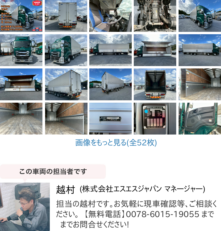 エアサス付きで荷物への衝撃を軽減。大切な貨物輸送にも安心の仕様です。 荷臺(tái)內(nèi)寸:長(zhǎng)961cm × 幅241cm × 高264cm の大容量ボディで、大型貨物も余裕の積載。 最大積載量13800kgを確保し、長(zhǎng)距離?重量物輸送に対応。業(yè)務(wù)の即戦力に。 7速マニュアル車で、しっかりとした操作感とパワフルな走行性能。 現(xiàn)狀カラーはグリーンですが、ご成約後に**キャブのホワイト塗裝(+30萬(wàn)円?稅抜)**も対応可能。 車検付きのため、即納が可能です。お急ぎの案件にもスムーズに対応いたします。