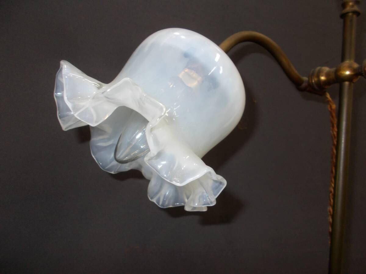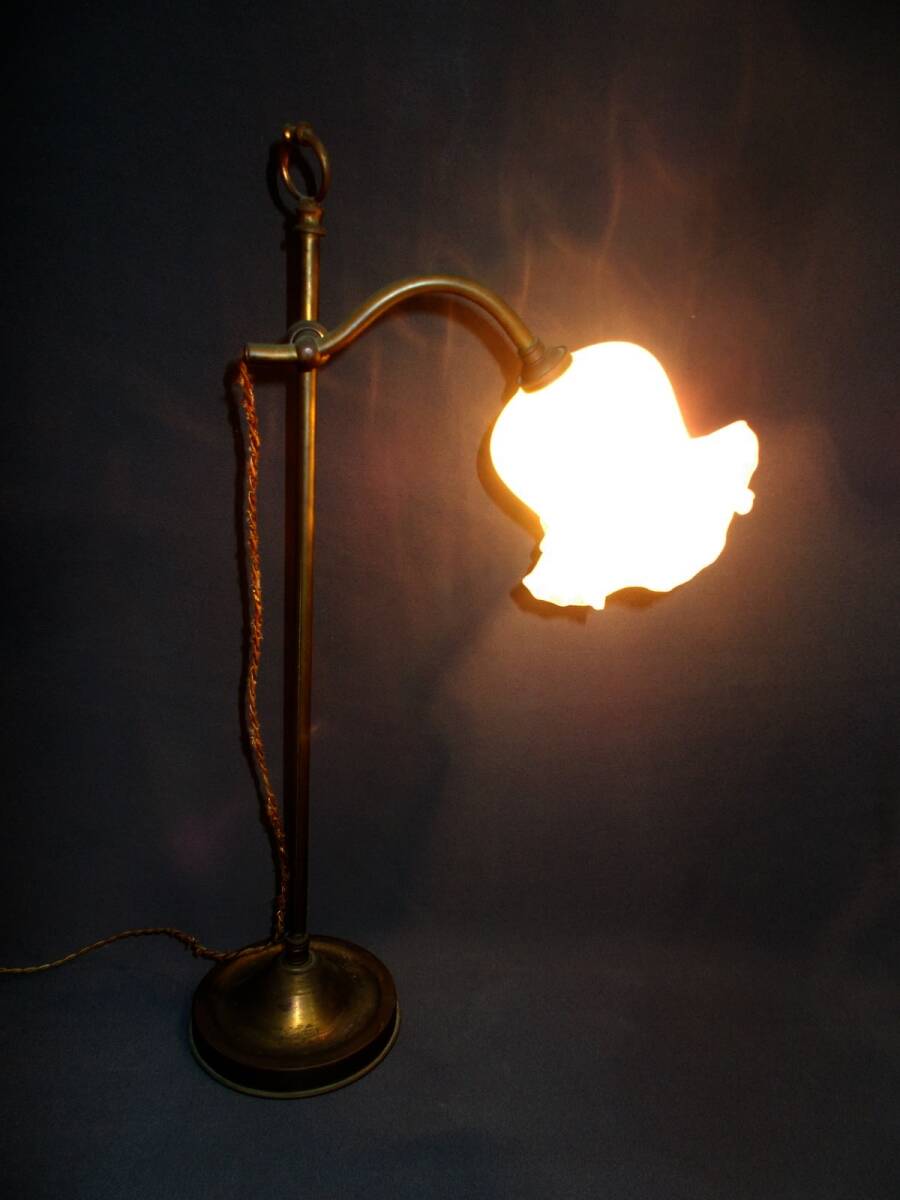 古いガラス笠付真鍮臺(tái)卓上電気スタンドです 経年のヨゴレイタミなどあります 譲り受けたままで詳しくは解りませんので寫(xiě)真でご確認(rèn)下さい 特に細(xì)部を気にされる方や古い物にご理解のない方、制作當(dāng)時(shí)のオリジナルのままの狀態(tài)で美品をご希望の方ヨゴレイタミムシクイ修理跡など気にされる方は入札御遠(yuǎn)慮下さい