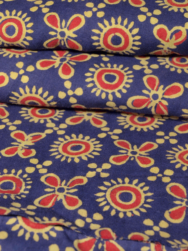 留紺(とめこん)色の地に抽象的な花が配された襷(たすき)の文様が染められている、綿のインド更紗のはぎれです。 1950-60 年ごろにつくられたと思われるアンティークのお品です。やや太めの古手の糸味がほっこりと趣深い印象です。 若干のこまかなくすみやうすよごれなどはあるかもしれませんが、目につく大きなしみやよごれ、褪色、穴などのダメージはなく、この時(shí)代のものとしてはとてもきれいな狀態(tài)です。 |