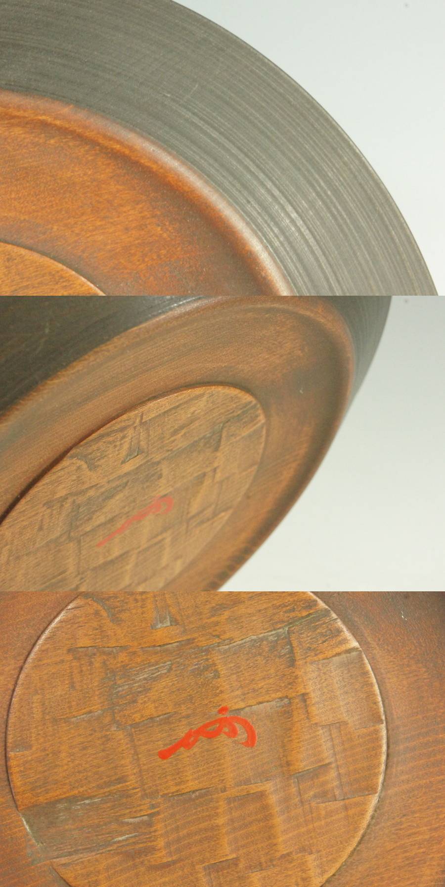 裏面中央に朱漆で、花押が書かれています。