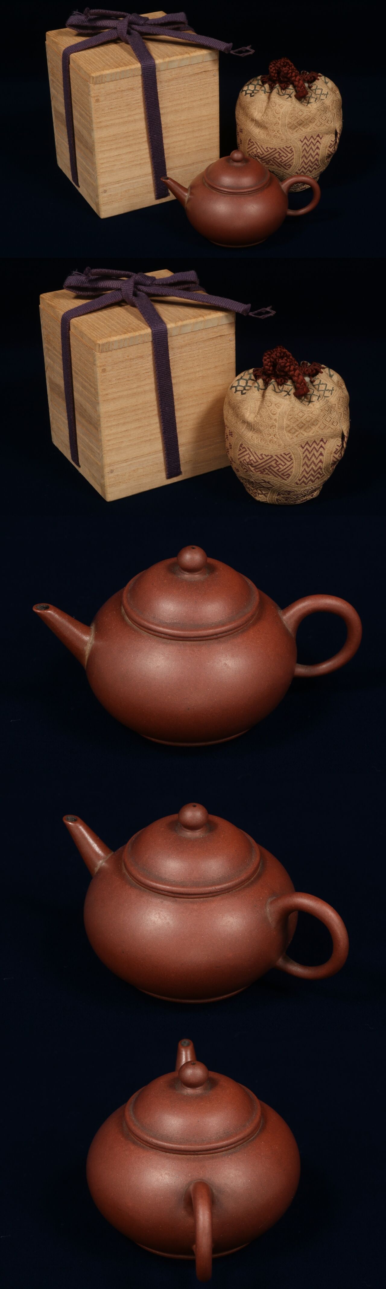 古玩 中國煎茶道具 紫砂 朱泥 急須 在銘 底款 貢局 時(shí)代 仕覆 木箱付