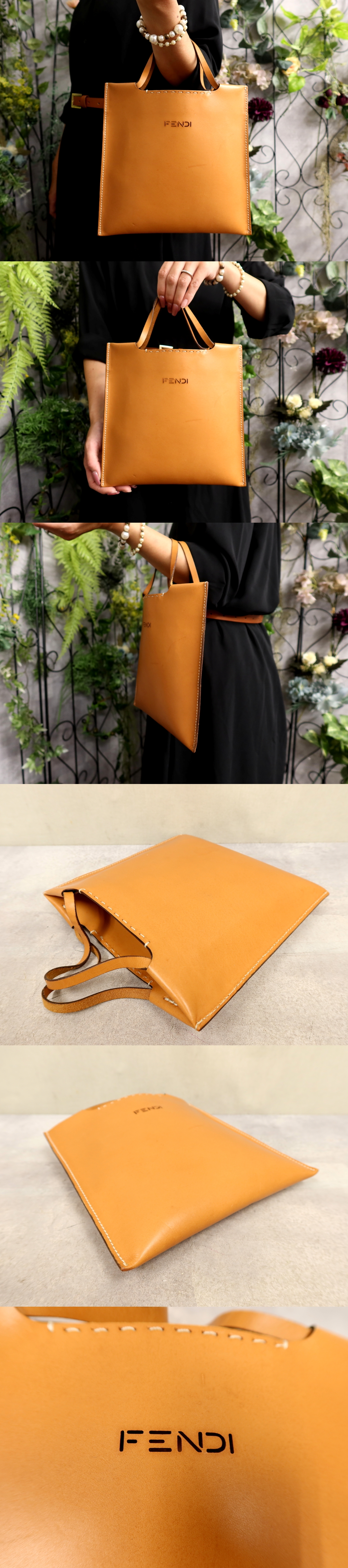 ロゴ型抜き カーフ レザー トート ハンド バッグ