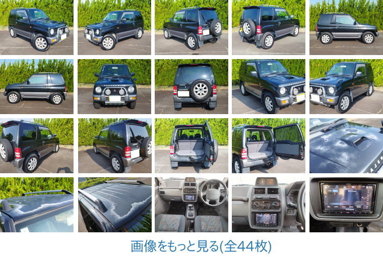 平成9年 三菱 パジェロミニ グレード VR-II 4WD ターボ AT ブラック×シルバー 車検 令和8年4月 81000キロ エアコン パワステ 純正ドアバイザー 純正アルミホイール 純正背面スペアタイヤ 純正ルーフレール 純正グリルガードフォグランプ 純正リアスポイラー 純正後席スピーカー ※全4スピーカー パワーウィンドウ 社外オーディオ ETC