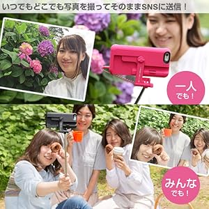 通常の自撮り棒と違って、iPhoneを裝著する手間いらず。