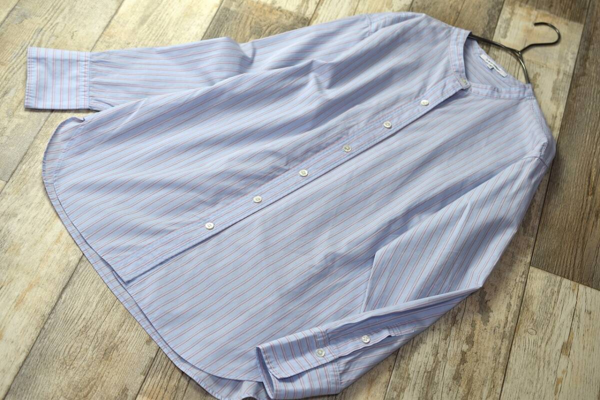 商 品 名:23區(qū) MYSTANDARD 長袖ノーカラーストライプ柄オーバーブラウスシャツ です。