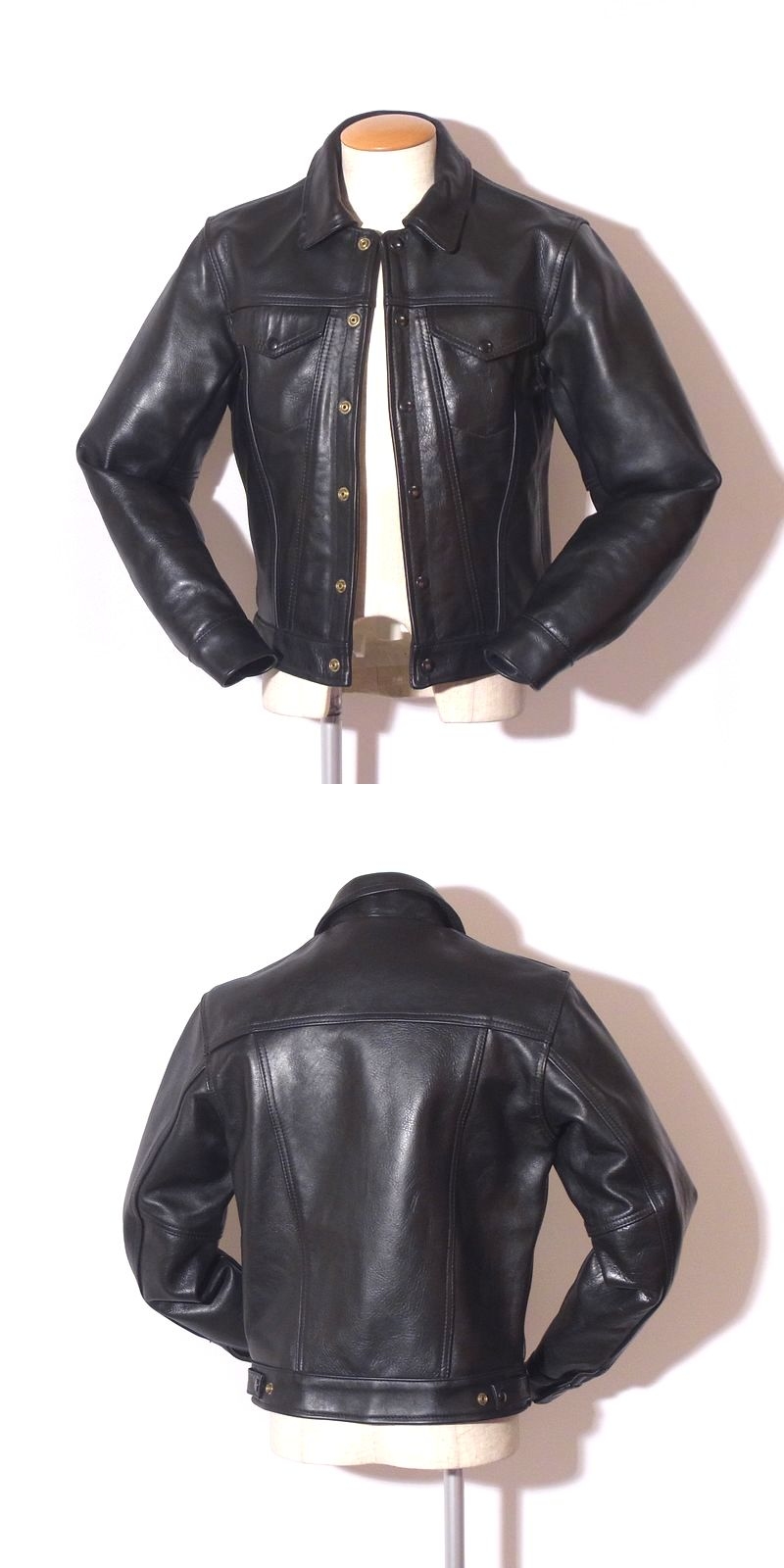 <商品詳細(xì)> リーバイス3rdのスタイルをそのままに、VANSONが手掛けたトラッカーレザージャケット「DJCB」。フロント、胸フラップのスナップボタン留め仕様が特徴です。今どきのタイトなスタイルが映える逸品、ライダーだけではなくカジュアルなタウンユースの街著としてもおすすめです。 ■著用感が少ない大変きれいな商品となります。 ■目立つようなダメージはありません。