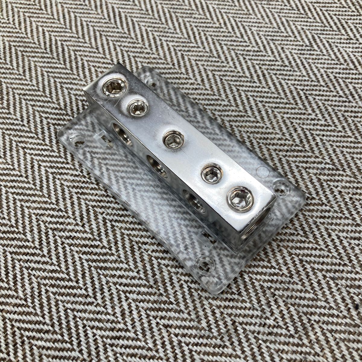 F2Music アースブロック 2-3DB-R1G プレミアムロジウムコーティング(0/1AWG×2?4AWG×3、使用期間不明)です。寫真に有る物が全てになります。今回、システム変更の為出品します。