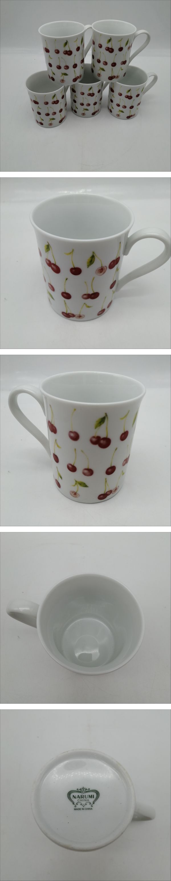 D1051 NARUMI ナルミ マグカップ 5客セット ボーンチャイナ 複數(shù)客用 ティータイムセット さくらんぼ チェリー柄 食器 | |||