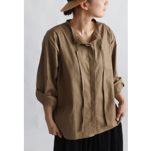 【 リボンカラー 隠しボタン ブラウス 】