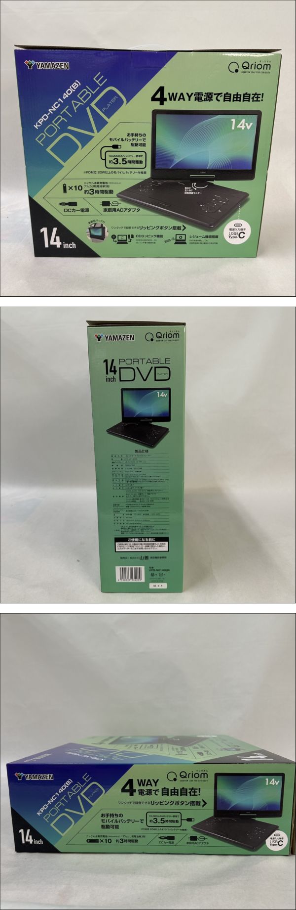 【NEW】山善 ヤマゼン YAMAZEN KPD-NC140(B) Qriom キュリオム ポータブルDVDプレーヤー 14inch 14インチ【未使用品】 | ||