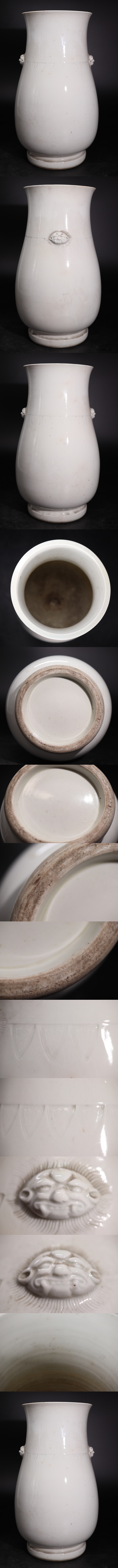 時代 白磁 雙耳 花瓶 / 中國美術 花器 壺 飾壺 煎茶飾 検索: 徳化窯 定窯 .G2584 |
