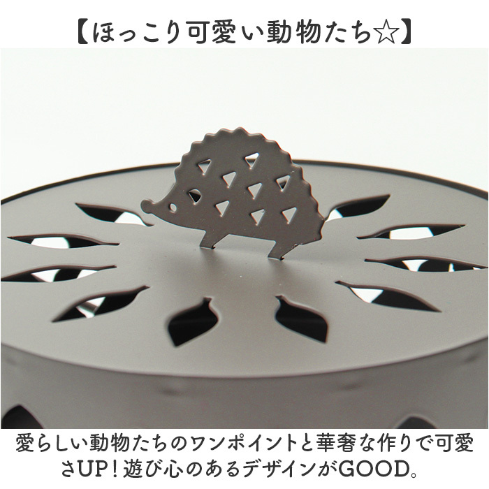 商品説明 | ??【動(dòng)物たちとおしゃれに蟲よけ?】 ?デイリー使いもレジャーもおまかせの、可愛い相棒?「atellier No.11 蚊遣り箱」が登場。 ?【まるでインテリアのような佇まい】 ?蚊取り線香に見えない、くすみカラーとマットな質(zhì)感でおしゃれ見せ?雑貨好きな方にオススメ! ?【ほっこり可愛い動(dòng)物たち☆】 ?愛らしい動(dòng)物たちのワンポイントと華奢な作りで可愛さUP!遊び心のあるデザインがGOOD。 ?【誰でもすぐに使える簡単設(shè)置】 ?スタンドに蚊取り線香を乗せるだけの、簡単設(shè)置。かけらになっても挾めるスタンドが便利。 ?【扱いやすいハンドルつき】 ?持ち運(yùn)びがしやすく、吊るしての使用もOKなハンドルつきタイプ。いろんな場所に置ける。 ?【スタイリッシュカラーがGOOD】 ?空間に馴染むナチュラルカラーで、ほどよく甘さをセーブ。お好みの1つをチョイス。 ?【夏のちょっとしたギフトにも】 ?シンプルでいておしゃれな専用BOX入り。ちょっとしたギフトにもオススメのアイテム。 ?【いろんな場所で大活躍】 ?リビング、玄関、庭先に。コンパクトだから、アウトドアなどのレジャーに持っていくのも◎ |