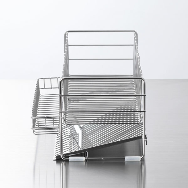 | 內(nèi) 容 | ■ツバメ 水切りバスケット ショート ■內(nèi)容 ?本體、ポケット、流れるトレー、腳ゴム×4 ■サイズ ?本體:約幅18×奧行41.3×高さ16.8cm ※流れるトレーセット時(shí) ポケット除く床接地幅=15cm 內(nèi)寸=約幅14×奧行40×深さ9.8cm ?ポケット:約幅6.8x奧行30.2×高さ6cm ?流れるトレー:約幅18.5×奧行39.8×高さ2.2cm 水が流れる所=約39.5cm ■重さ ?セット時(shí):約1.46kg ■耐荷重 ?全體:15kg ■材質(zhì) ?本體、ポケット:18?8ステンレス ?流れるトレー:18?0ステンレス ?腳ゴム:シリコーンゴム ■日本製 ◆參考価格 14300円相當(dāng) デッドスペースになっていたシンク脇の隙間にも設(shè)置しやすい <TSUBAME(ツバメ)>の水切りバスケットです。 丈夫で清潔にお使いいただきやすいステンレス製。 設(shè)置しやすい<ショート>。 約2人分の食器類を収納できます。 最大の特徴は、本體枠組みがU字になっていること。 これにより、大皿もきっちりと納まりやすく、 垂直に立てられるので水切れが早く、安定感もあります。 コップやマグカップ、 ワイングラスなどをどの位置にも掛けることができ、 場(chǎng)所をとりがちなペットボトルや牛乳パック、 保存容器、弁當(dāng)箱なども差し込むだけで収納できます。 ※使用狀況により異なります。 両サイドは、まな板も安定して立掛けられる設(shè)計(jì)な點(diǎn)もうれしいポイントです。 |