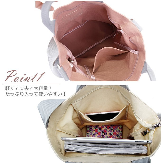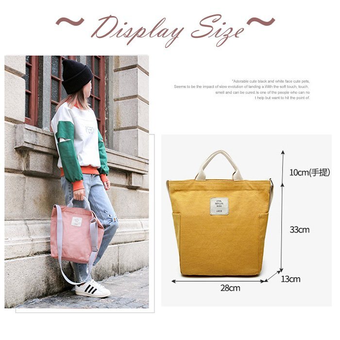 ■商品名 ?トート&ショルダー 取り外し可能なショルダーベルトを付けると、ショルダーバッグにも。 トート?肩掛け?斜め掛けの3wayで用途や荷物量に合わせて使い分けができます。 ?メインの開閉部分にはファスナーを取り付けているので 中身が見えにくくなっています。 ? しっかりとしているわりに重すぎない生地で、 マザーズバッグにも旅行バッグにも気楽に使い回しOK◎ ?A4もたっぷり入る大容量 A4サイズのものも入るゆったりめな構(gòu)造。普段のお出かけから、通勤用のサブバッグ、1 2泊の旅行バッグにもおすすめです。 オープンポケット付きで 細(xì)々したものも仕分けできます。 スマホケースや財(cái)布などの日常使うものから タンブラーやA4サイズのファイル?雑誌、折りたたみ傘、 手帳、タブレットなどが一度に入ります。 サイズ 長約28cm×幅約12cm×高約33cm 持ち手:約8cm ストラップ:約120cm 重さ:0.4kg 素材:帆布 注意事項(xiàng) ?畫像はご覧になっているモニターやPCなどの環(huán)境により、実物と多少カラーが異なる場合がございますのでご了承ください。 ?サイズは平置きサイズとなりますので測り方により誤差が出る場合がございます。 ?入荷?生産時(shí)期により、色、サイズ、素材など多少異なる場合がございます。 ?本製品は生産過程におきまして、生地を織る際の糸の継ぎ目や多少のほつれが生じることがありますが、 予めご了承ください。 ?簡易包裝となっており、保管?梱包時(shí)にシワが伴う場合がございます。