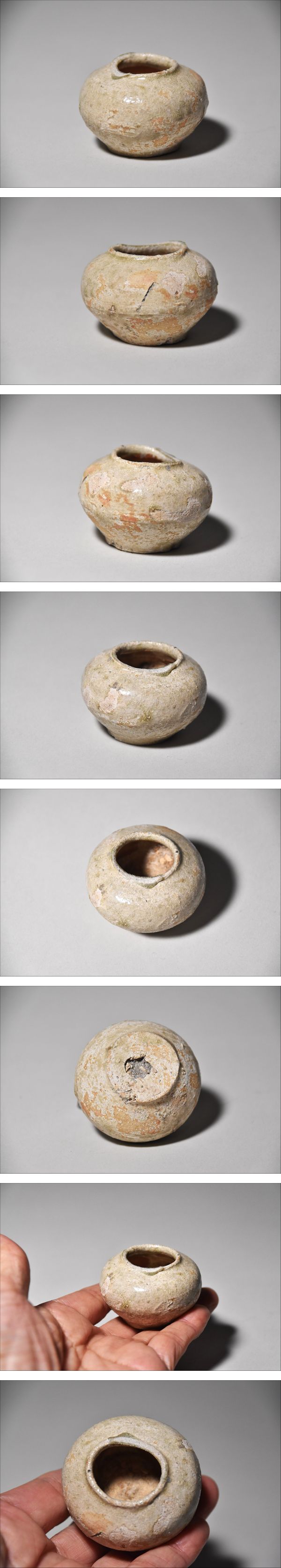 商品説明 | 「古瀬戸小壺(鎌倉時代)」です。 窯跡発掘の小壺で、歪みと底に小穴を埋めた様な痕があります。 釉剝げもありますが、殘る灰釉は落ち著いたツヤが保たれ 小品ですが、美しい存在感です。 水も試しましたら漏れませんでした。 どうか、よろしくお願いいたします。