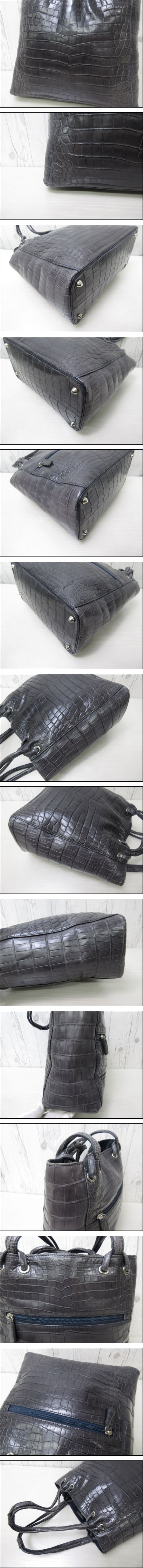 極美品 マット クロコダイル ハンドバッグ トートバッグ バッグ グレー系 90666 | ||